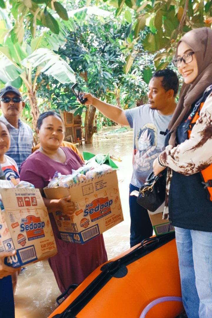 Karawang – Anggota DPRD Kabupaten Karawang Fraksi Partai Golkar, Hj. Saidah Anwar, SH, melakukan kunjungan langsung sekaligus menyalurkan bantuan kepada warga terdampak di Dusun Tenjojaya, Desa Telukbuyung, Kecamatan Pakisjaya, Kabupaten Karawang, menyusul masih tingginya intensitas hujan dan meningkatnya debit air Sungai Citarum.