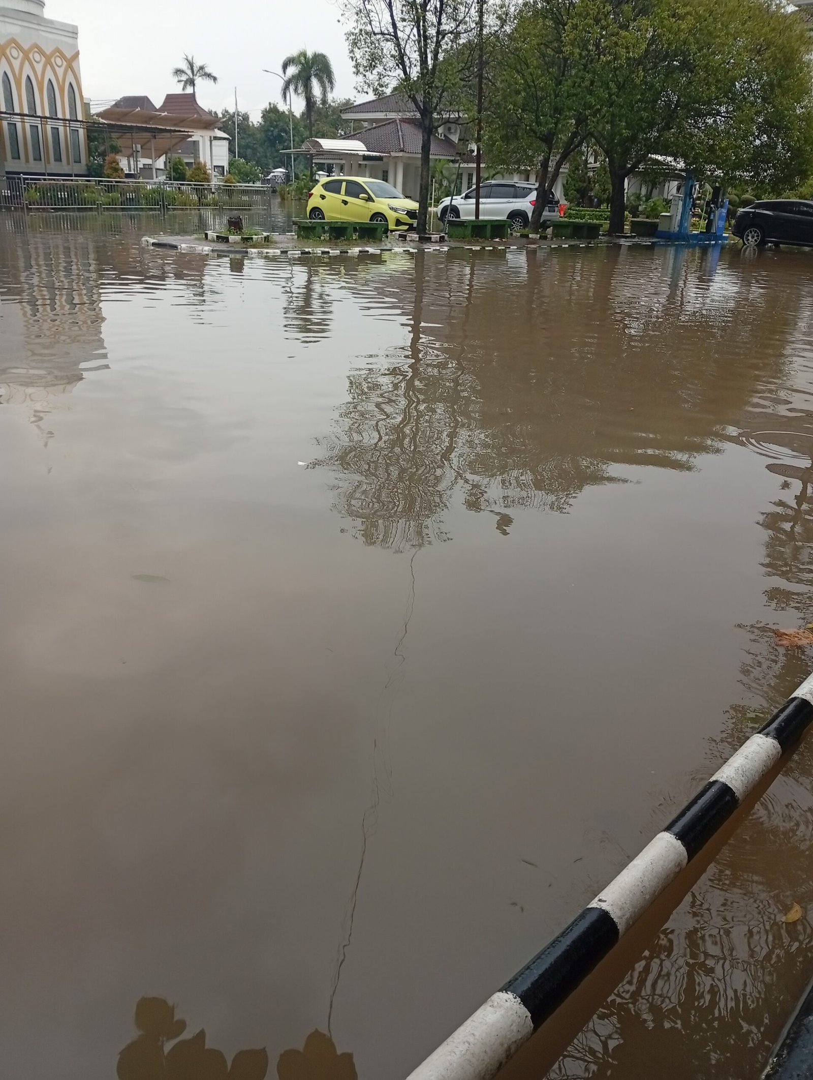 Genangan terlihat di beberapa area strategis di dalam lingkungan Pemda Karawang, sehingga menarik perhatian masyarakat dan pegawai yang beraktivitas di kawasan tersebut. Kondisi ini diduga dipicu oleh sistem drainase yang tidak mampu menyerap debit air hujan secara maksimal, serta katup pembuangan air yang dinilai kurang berfungsi optimal.