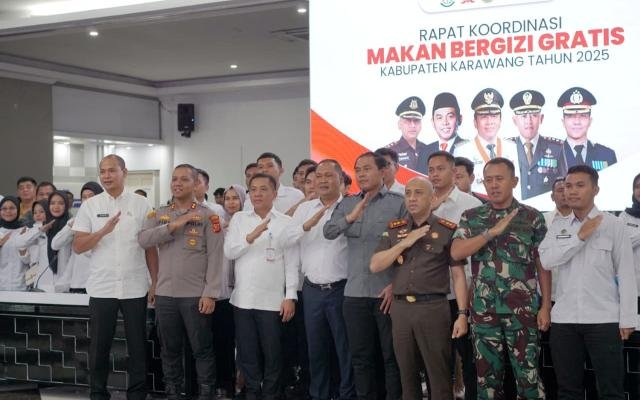 KARAWANG, SUARAPROKLAMASI.COM – Bupati Karawang H. Aep Syaepuloh pastikan keberlangsungan Program Makan Bergizi Gratis (MBG) di Kabupaten Karawang berjalan sesuai standar prosedur yang telah ditetapkan. Hal tersebut disampaikannya saat Rapat Koordinasi Program Makan Bergizi Gratis Tahun 2025 di Aula Singaperbangsa lt 3, Rabu (1/10/25).